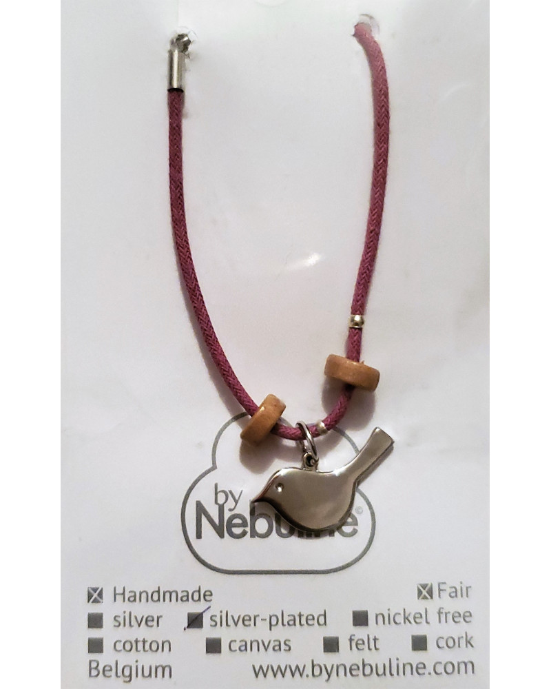 Bracelet en coton avec une rallonge de 5 cm et pendentif "Oiseau".