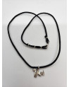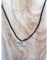Collier en coton noir et pendentif serpent en argent et rhodium.