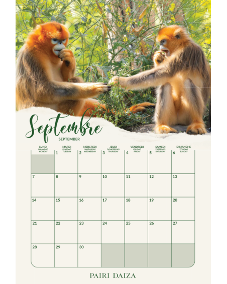 Parfait pour la maison ou le bureau, ce calendrier est aussi un cadeau idéal pour les amoureux des animaux, les habitués du parc ou les curieux de nature.
