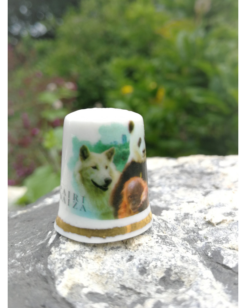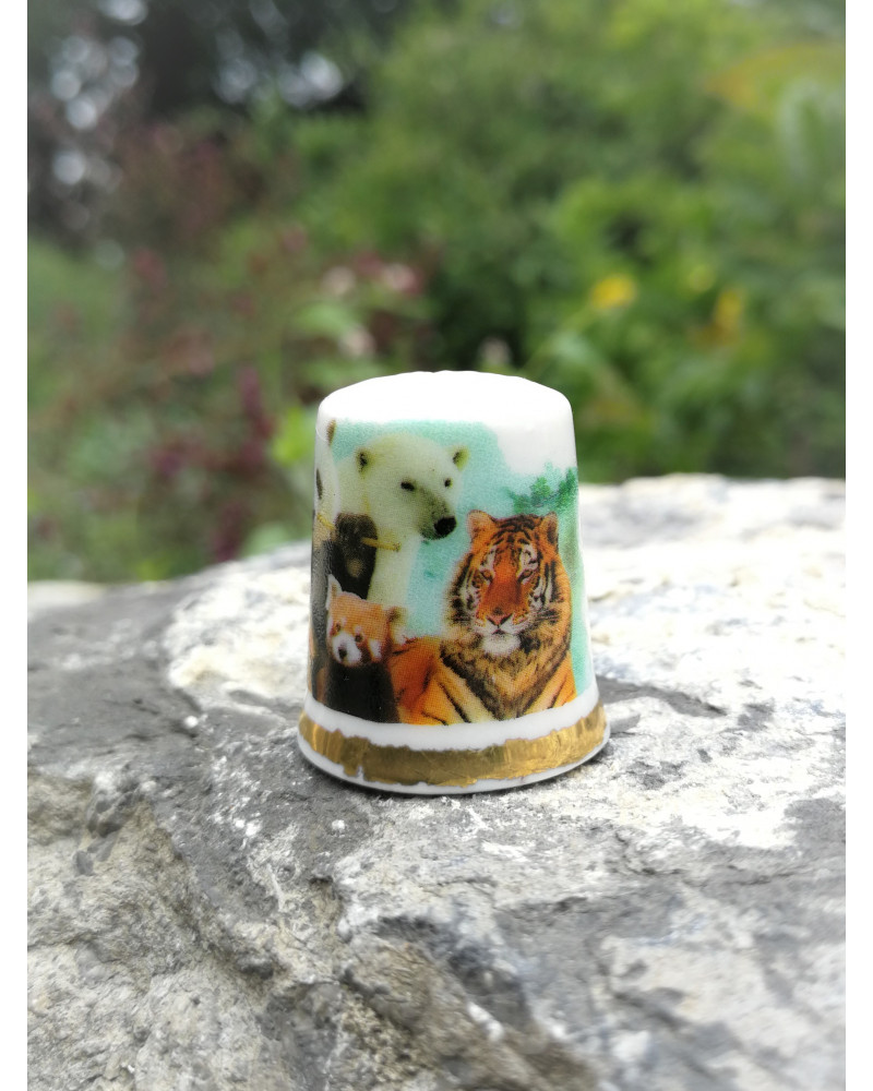 Dé à coudre de collection en porcelaine représentant un loup, un panda, un ours polaire, un orang-outan, un panda roux et un tigre de Sibérie.