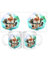 Le deuxième mug arbore une fresque riche en animaux iconiques : panda, flamant rose, léopard, éléphant, ours, gorille, et des oiseaux tropicaux, le tout sur un fond verdoyant aux touches bleutées. Il évoque l’harmonie entre faune et flore au cœur du Jardin des Mondes.