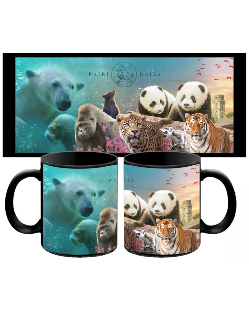 Plongez dans l’univers magique de Pairi Daiza à chaque pause avec ce mug en céramique noir orné d’un visuel panoramique réunissant plusieurs des animaux les plus emblématiques du parc. Cette composition vibrante et immersive présente un magnifique éventail d’espèces : ours polaire, gorille, panda géant, lémurien, léopard, tigre, morse, et plus encore.