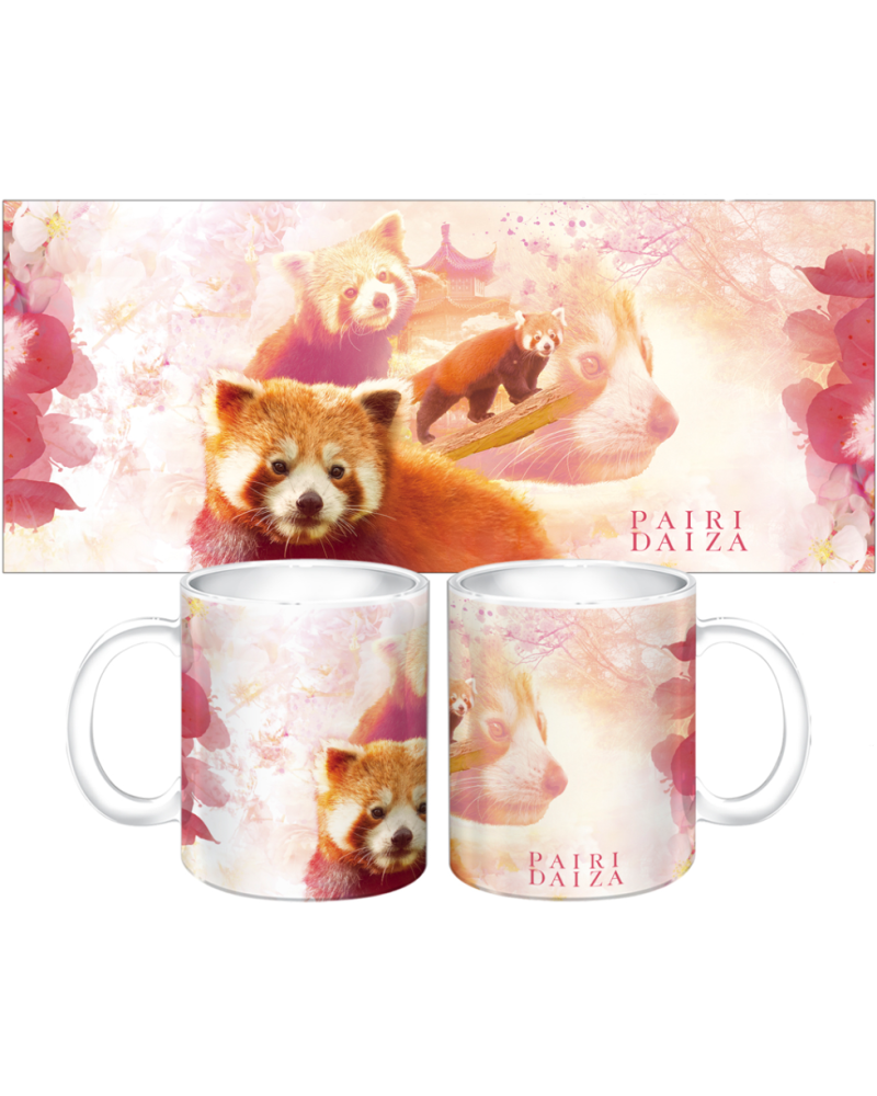 Mug blanc illustré d'un montage photo de Pandas Roux de Pairi Daiza.