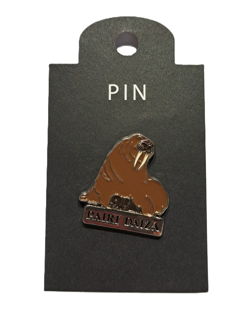 Un pin's métallique morse, représentant la force tranquille de ce mammifère marin.