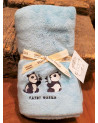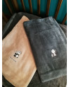 Panda brodé gris et blanc. Inscription Pairi Daiza brodée gris.