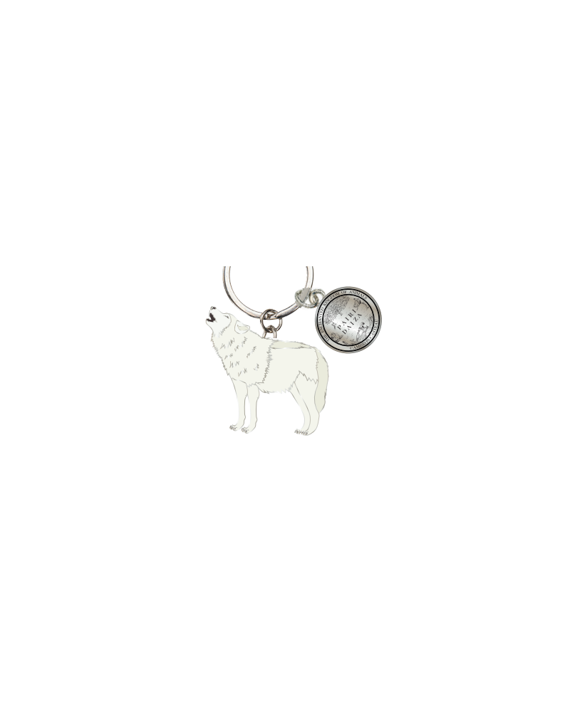 Adoptez ce porte-clé en métal élégant et robuste, mettant à l’honneur le loup blanc.