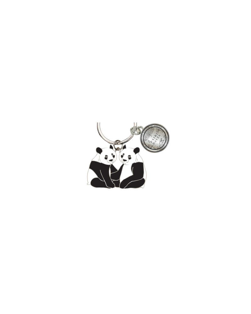 Un porte-clé original en métal, à l’effigie de deux pandas accompagné d’une breloque griffée Pairi Daiza.