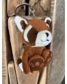 Adorable porte-clé peluche panda roux aux grands pieds.