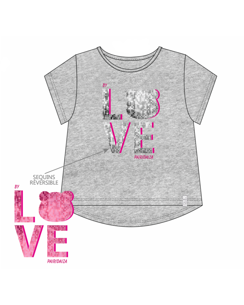 Les sequins réversibles vous permettent de changer de couleur entre rose et argenté en un simple geste, affichant ainsi le mot "LOVE" de manière étincelante.