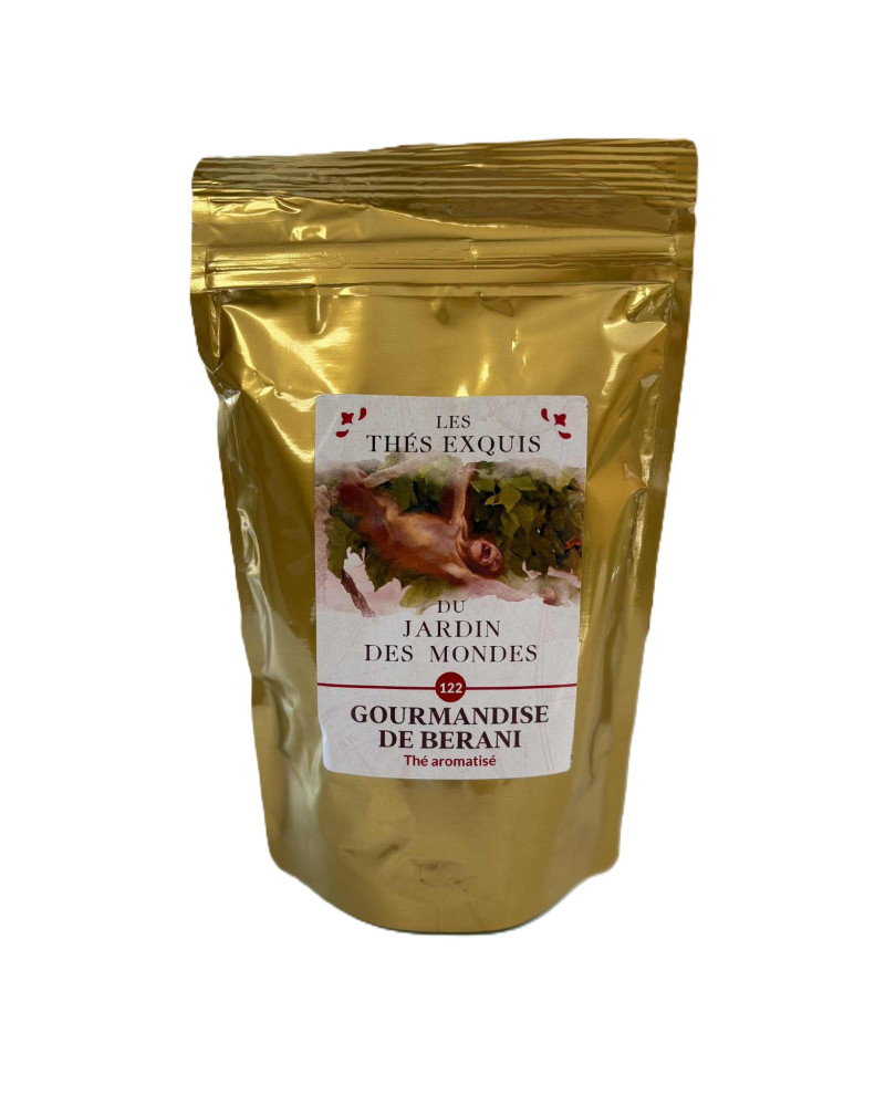 Un thé vert fruité aux mûres, framboises, fraises, figues lyophilisées et pétales de pivoine, pour une infusion fraîche et délicate.