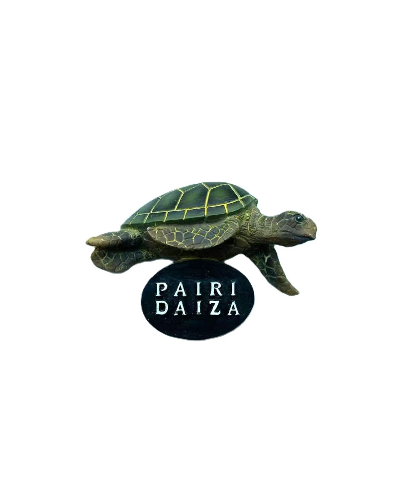 Een harsmagneet met een sierlijke zeeschildpad, ambassadeur van de oceanen, uit de officiële Pairi Daiza-collectie.