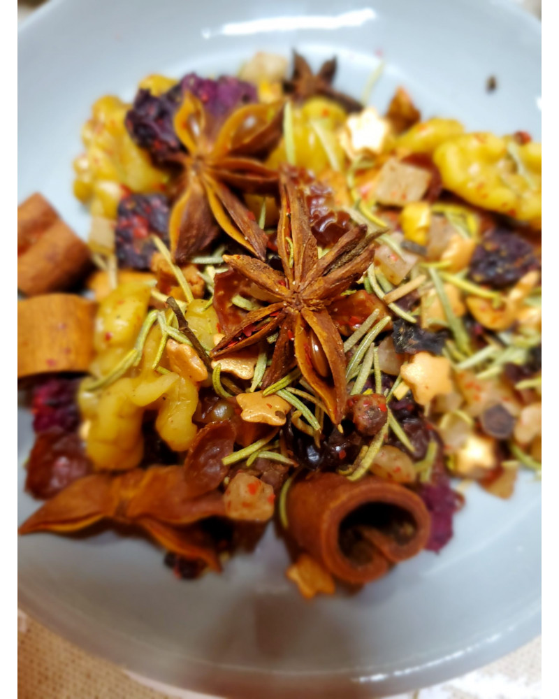 Rozemarijn en kaneel voegen specerijen toe en maken deze thee heel feestelijk.